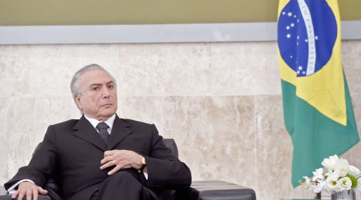 Brazilian acting President Michel Temer attends a ceremony of the presentation of credentials of Ambassadors at Planalto Palace in Brasilia on May 25, 2016. / AFP / EVARISTO SA
