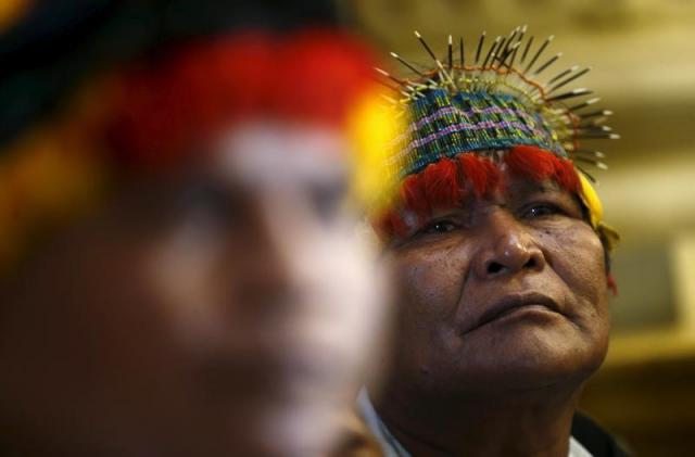 Unos 600 nativos de la amazonía del Perú tomaron decenas de pozos y una planta de energía del mayor lote petrolero local, en una nueva ofensiva como parte de las protestas con las que buscan que el Gobierno los consulte antes de firmar un nuevo contrato, dijo el miércoles un dirigente del grupo. En la imagen, jefes de las comunidades indígenas en una rueda de prensa Lima, 13 de agosto de 2015. REUTERS/Mariana Bazo