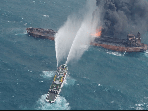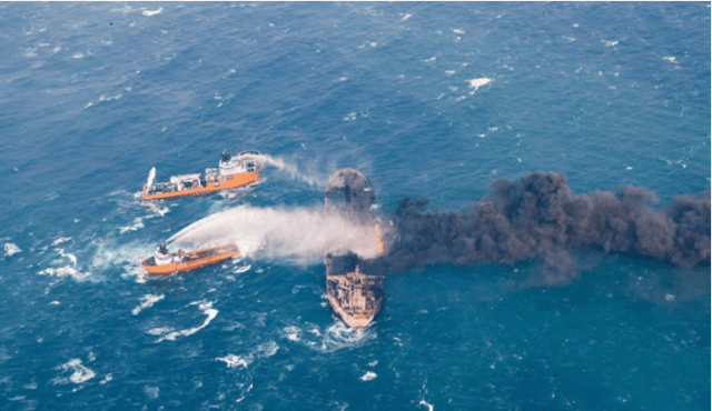 Después de arder durante una semana en el Mar de China, el Sanchi se fue a pique este domingo