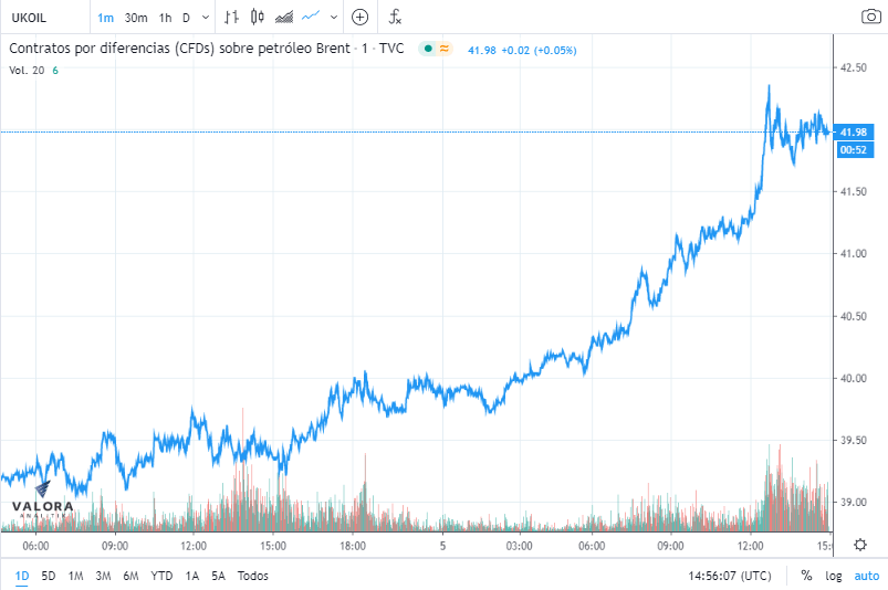 Las buenas expectativas sobre la reunión han provocado que los precios del petróleo suban hoy para la referencia Brent a un precio de 42 dólares por barril, mientras que el petróleo estadounidense WTI escala hasta los 40 dólares.