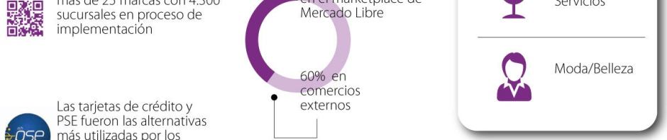Más de 40% de estas transacciones se hizo en el marketplace de Mercado Libre y casi 60% restante en comercios externos. La billetera virtual ahora ofrece pagos y descuentos en más de 25 marcas con 4.300 sucursales en proceso de implementación.