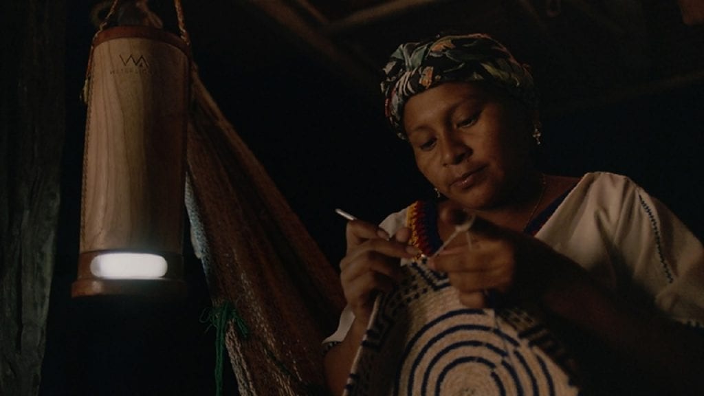 “Queríamos que tuviera en cuenta el contexto donde va a estar el producto, nos inspiramos en la cultura wayuu”, cuenta Diego Rodríguez, director de Wunderman Thompson Colombia, que un año atrás incubó el proyecto para hacer una consultoría de acompañamiento que le dio forma a la idea, que adoptó patrones y símbolos indígenas en la superficie de la lámpara. “El dispositivo está ensamblado en su totalidad en materiales reciclables”.